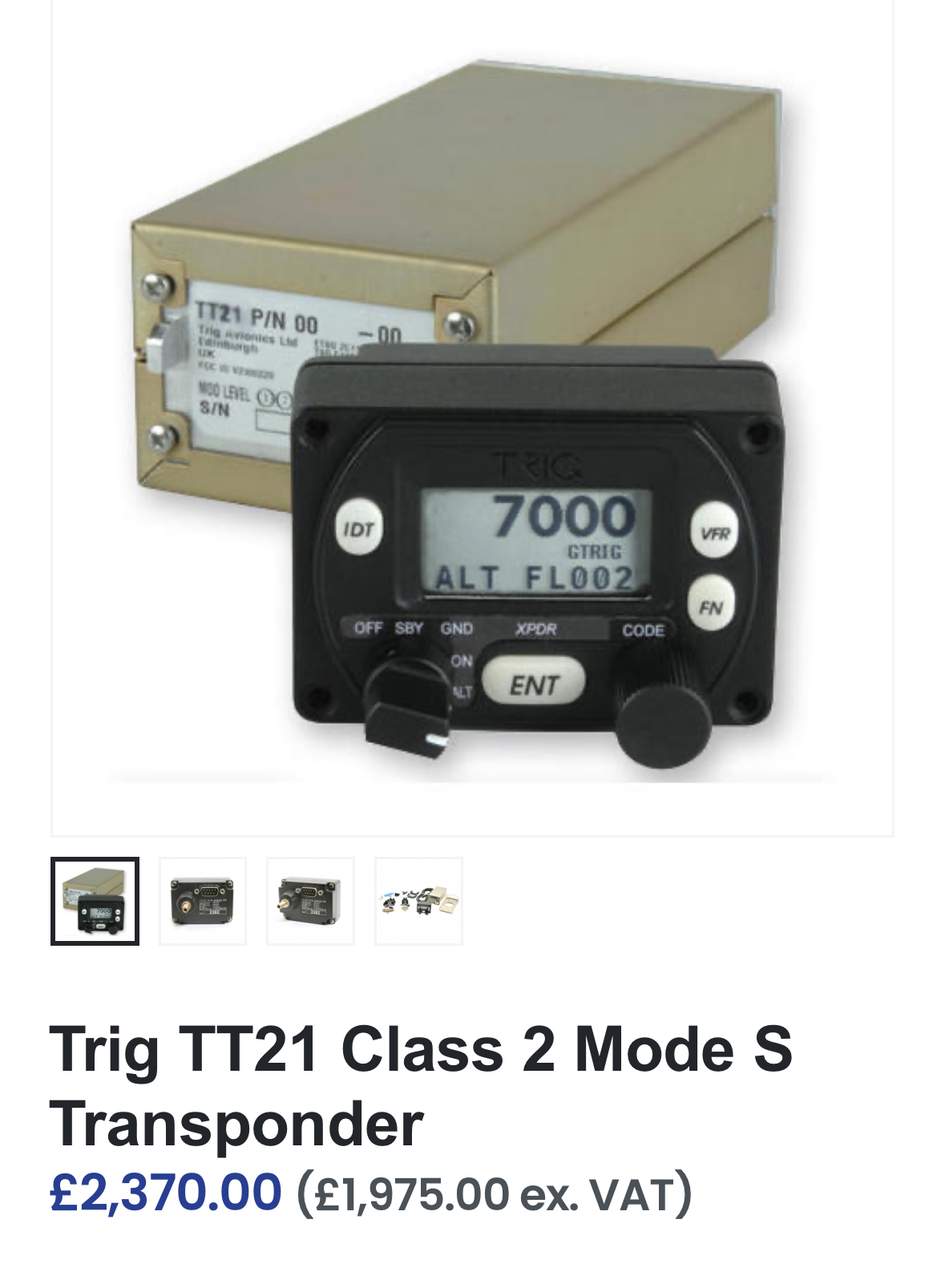 Trig TT21 mode S transponde available due to panel layout change. Comes with antenna and cables.