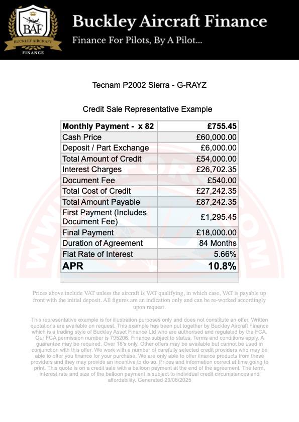 Wilco Aviation is pleased to offer this Tecnam P2002 Sierra G-RAYZ, built in 2008 and presented in excellent condition, currently based at a private site in Cambridgeshire, England and available to view by appointment.