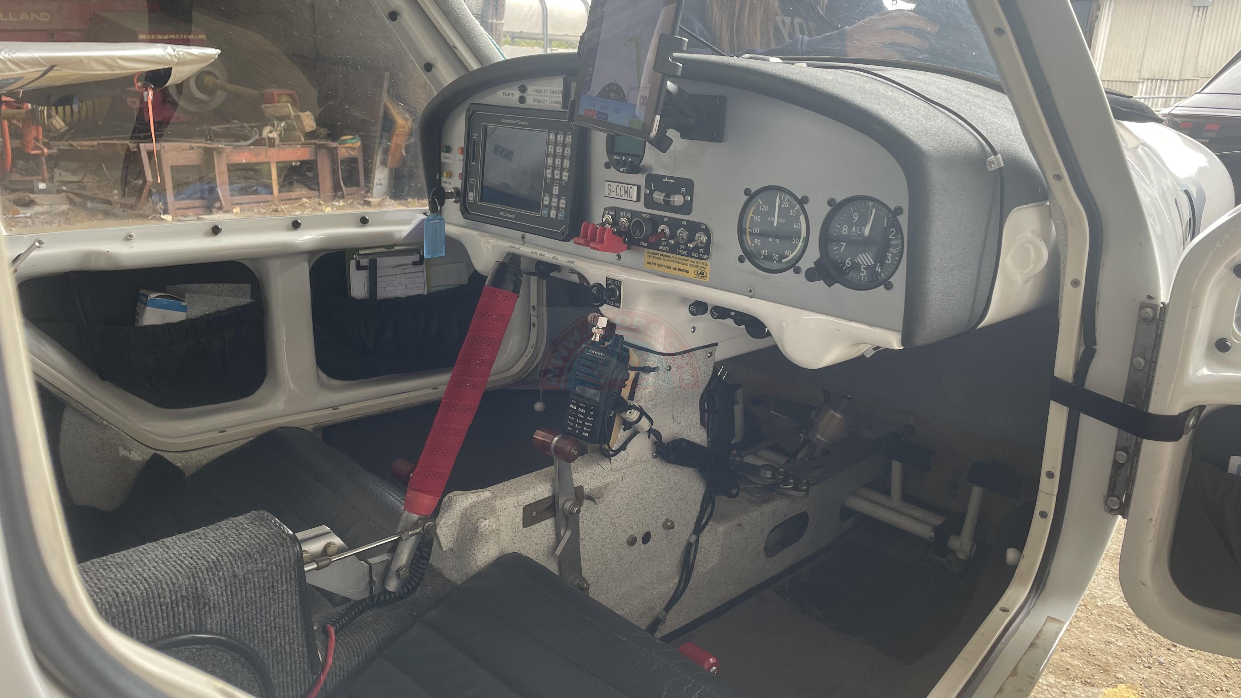 - MGL Engima EFIS (Artificial Horizon, moving map, pressure compensated GPS height, Rate of climb, GPS ground speed, compass & heading, fuel flow, fuel gauge, EGT, oil temp and press, Rev counter, Hobbs, flight timer, User configurable screens).