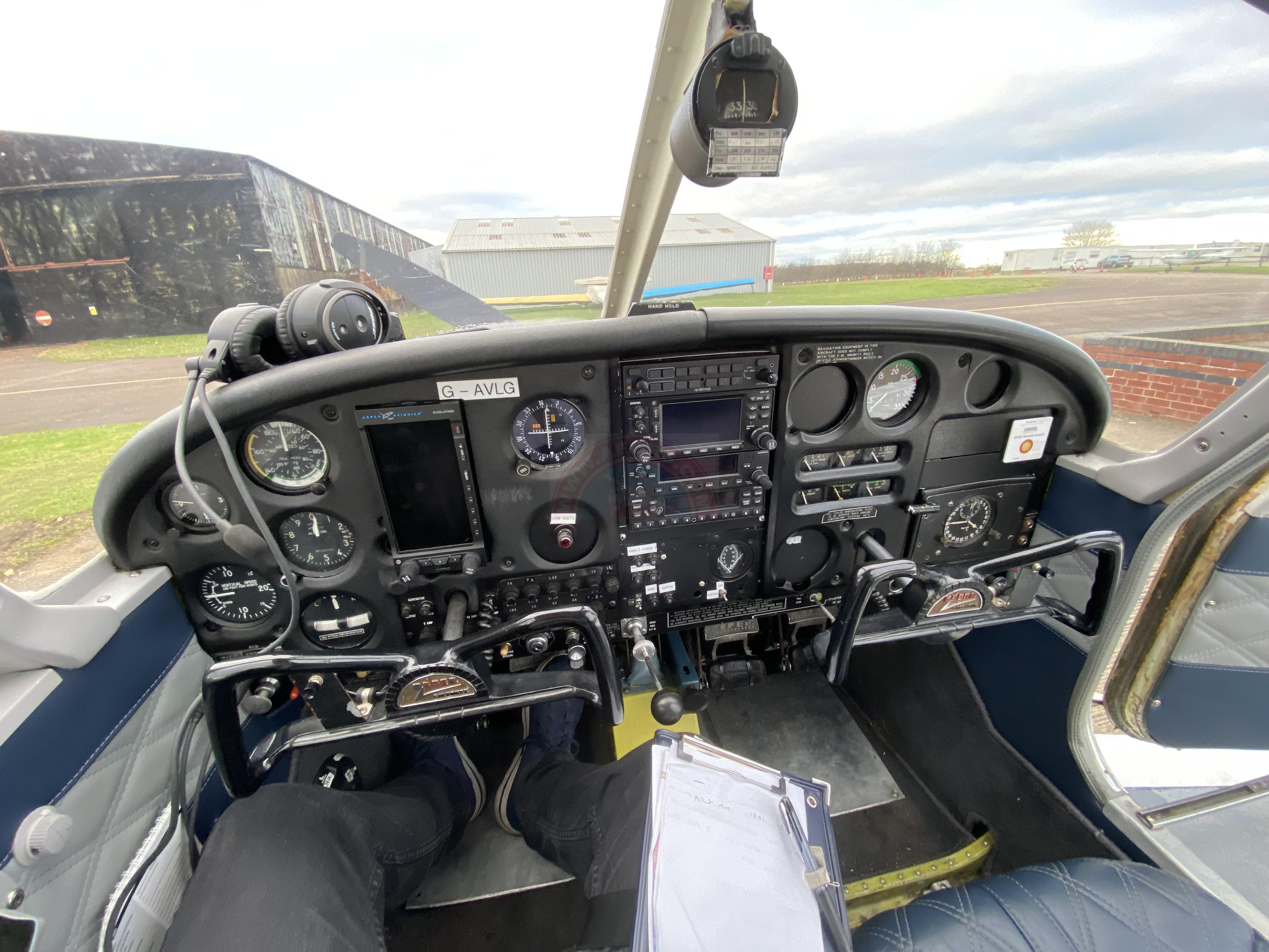 GAVLG is well maintained and serviced by Davidson Aviation based in Leicester. GAVLG Aircraft has just successfully completed its Annual Service. Aircraft is parked outside protected by a full fuselage cover.