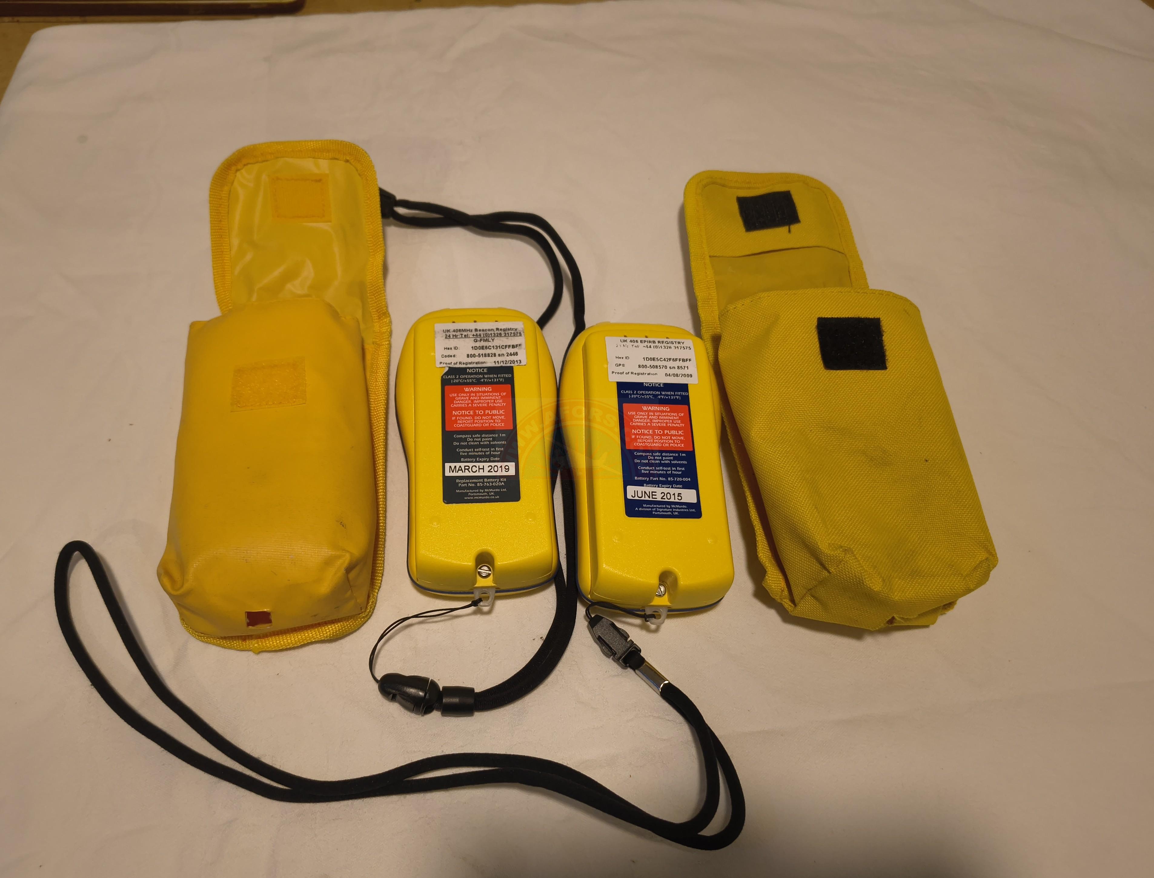 One mcmurdo fast find PLBs for sale. Will require new batteries. Can be sold seperately. Asking price £60