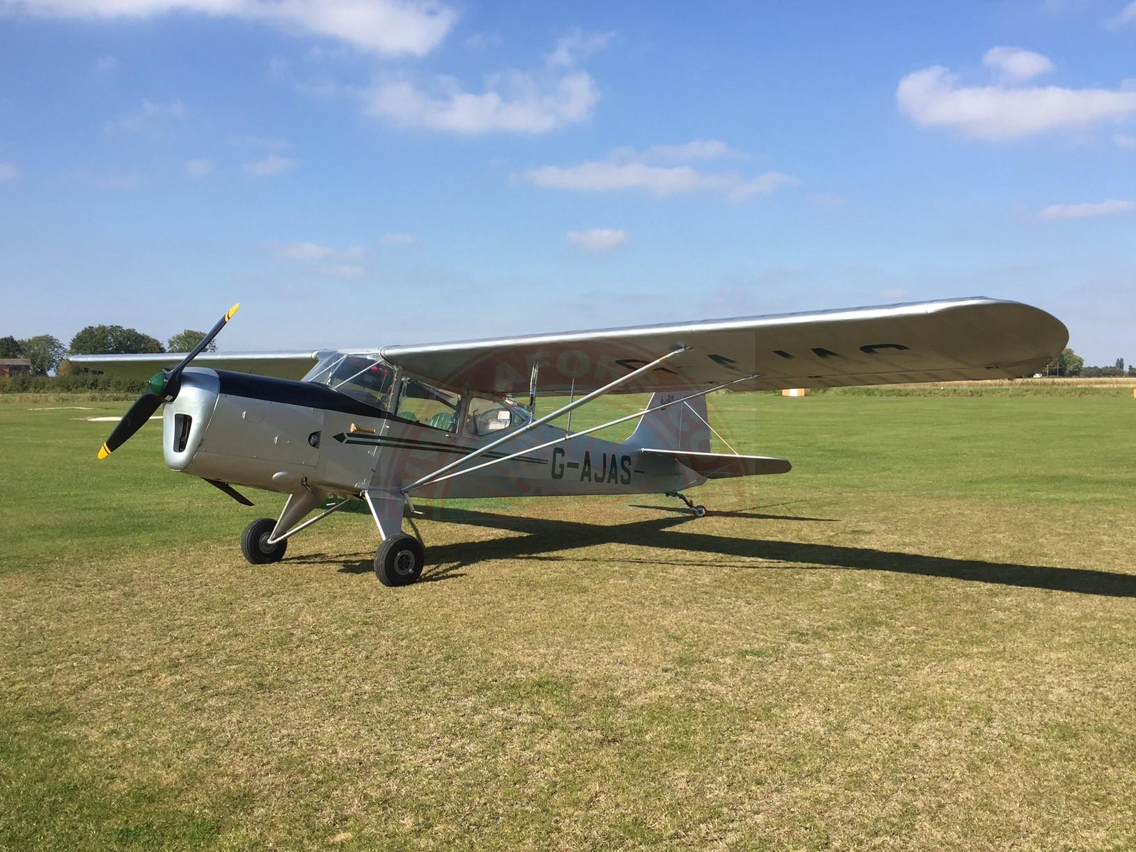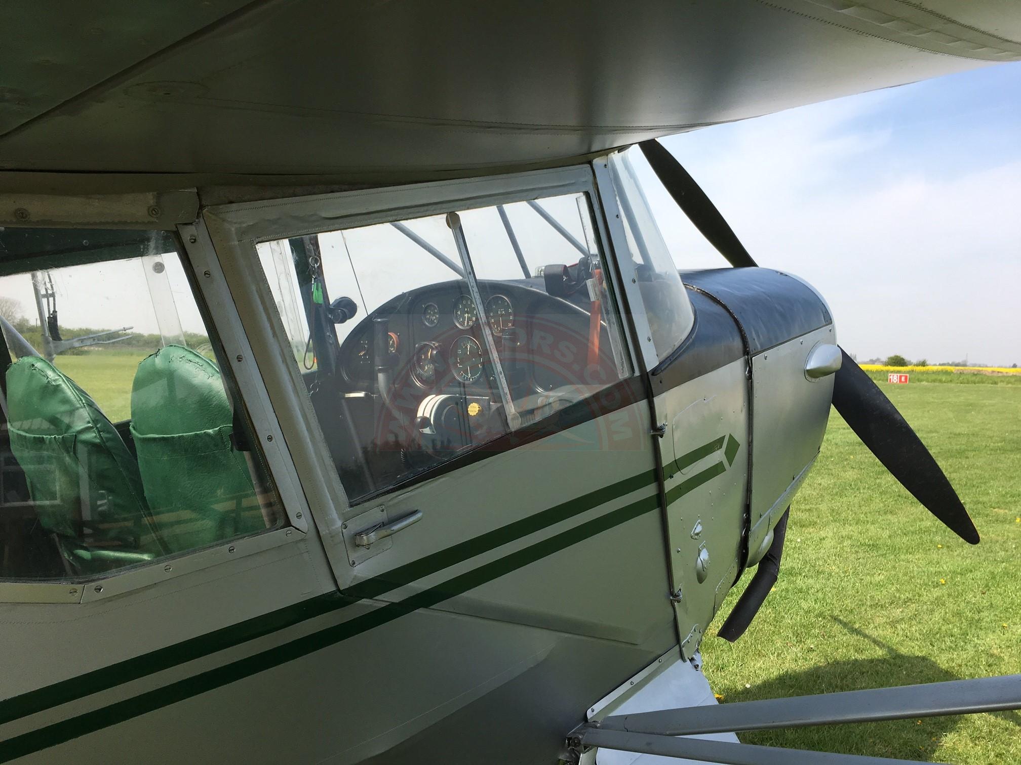This is a 3 seat Auster, very short field performance and cruises at 100mph burning around 30ltrs per hour average.