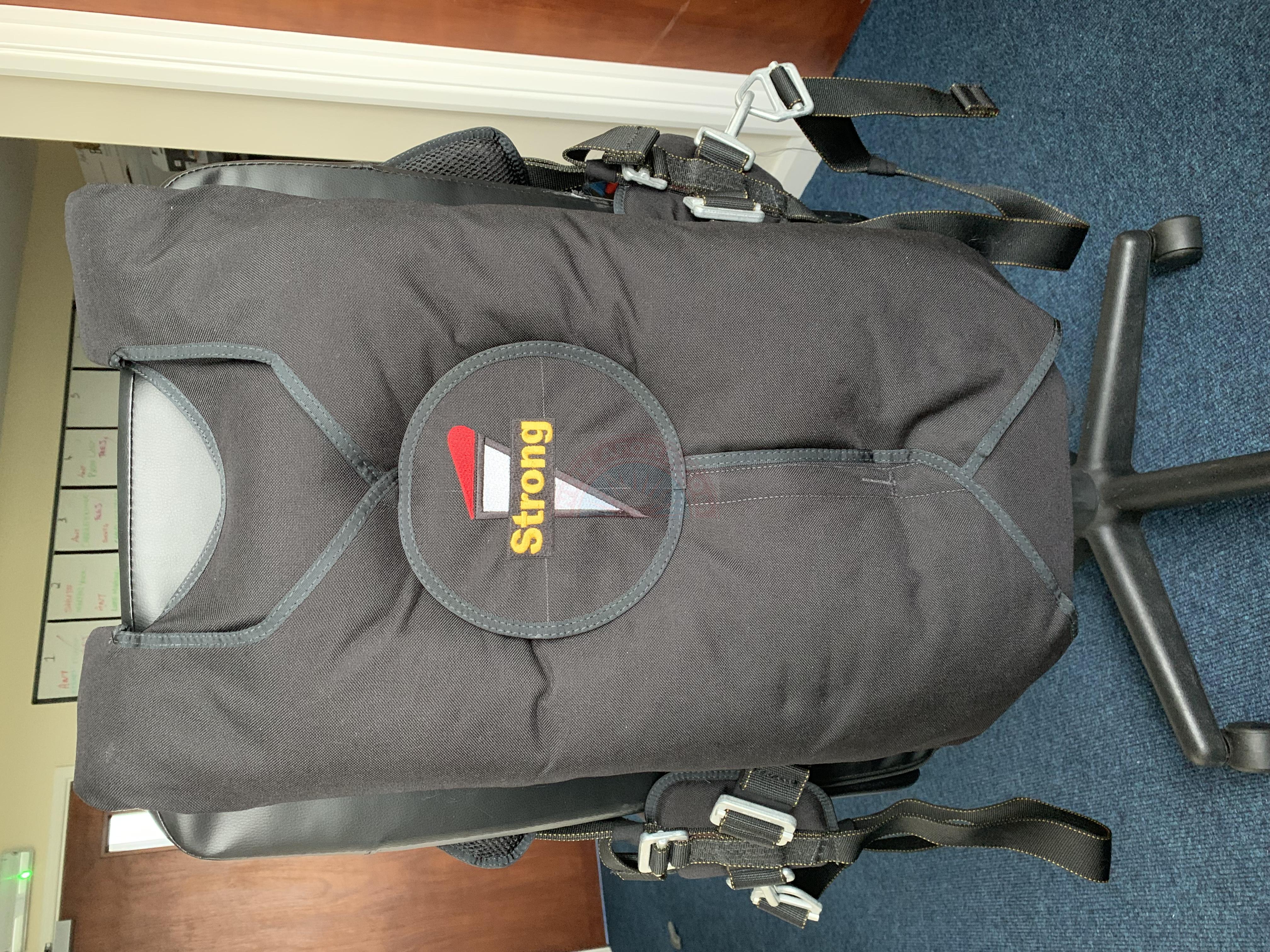 This is a String 303 Back bail out rig. The 303 Back was designed as a jump pilot or aerobatic bail out rig. I purchased the rig for flying single seat aerobatic aircraft but never actually used it.