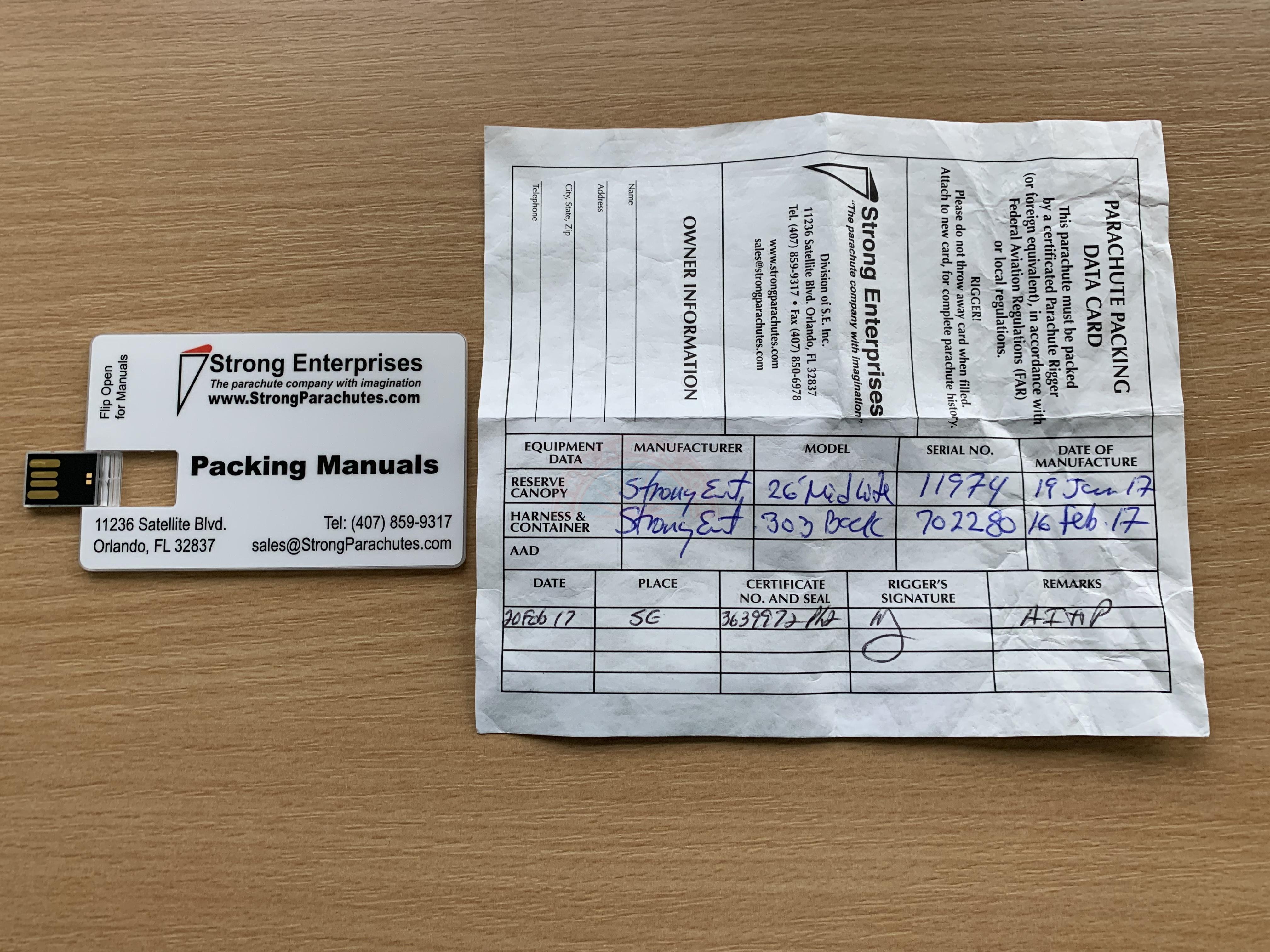 It needs to be repacked as they recommend its done yearly, the date on the paperwork shows date of manufacture Jan 2017. It is complete with USB on usage and carry bag so complete as I got it from the manufacturer.
