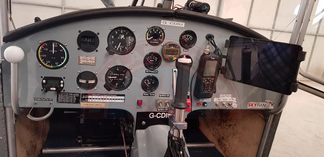 G-CDIU is a fine example of a well-equipped 2005 Sky Ranger with a Rotax 912 ULS (100hp). February this year it had a 200hr engine and airframe service and approved modifications and upgrades also with a gold star valet at Micro Valets.