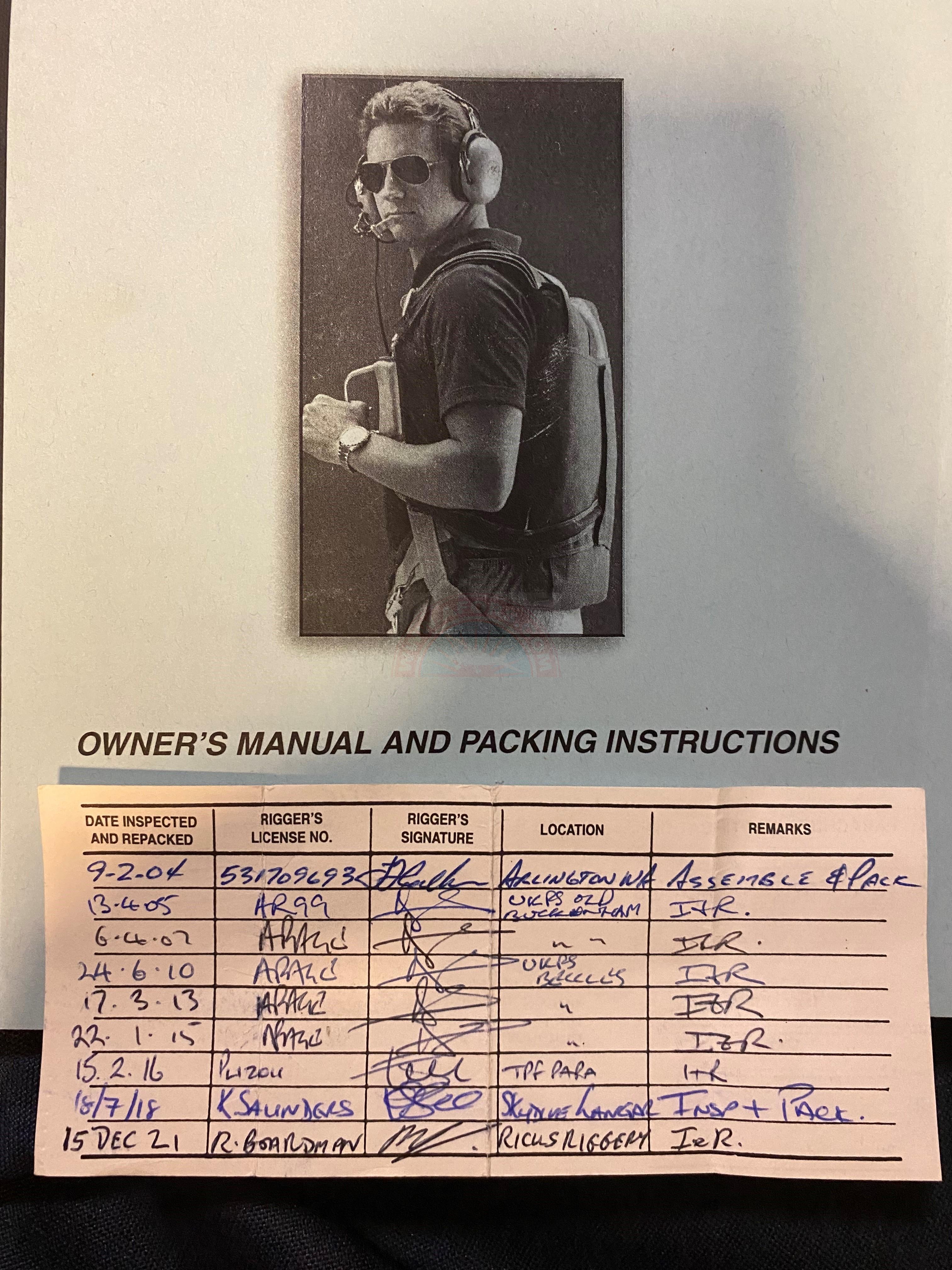 Softie Wedge Parachute with aerobatic harness. Sadly for sale due to selling my Pitts earlier in the year. Extremely good 9/10 condition and comes with packing instructions, blue carry/storage bag and logbook. To buy new in the UK would be £3,450.