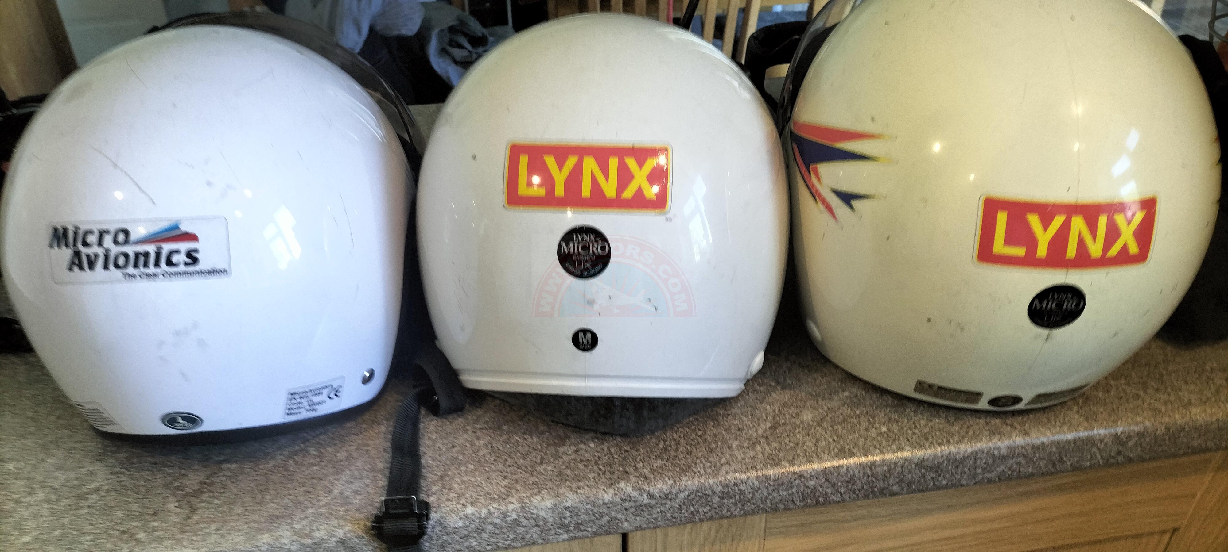 3 Helmets, 2 Lynx, one med one small and 1 Microavioniccs, large