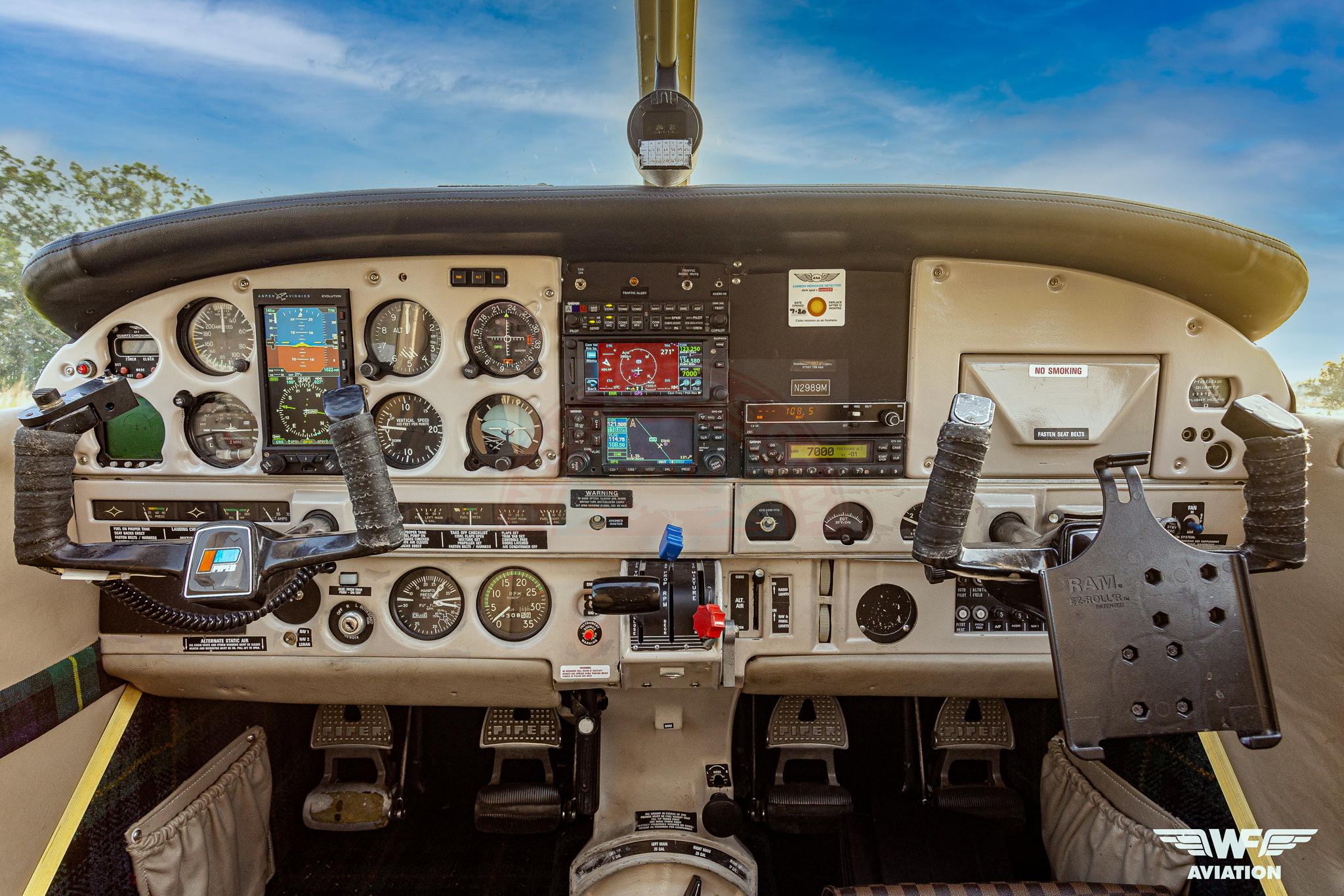 If you’ve been following prices of the Piper PA-32s over in the US, you’d know this type is finally commanding the prices to match its ability. The space available for both people and baggage makes it a GA business tool, and that is what N2989M has been. The owner has relied on this aircraft for meetings all over the UK, France and the continent that he simply had to attend. As a result, the panel has been comprehensively updated to allow IFR flight in a stress-free fashion, and the airframe has been cleaned up with speed mods that allow true airspeeds of over 145kts in flight. A keen eye will see the spats and various gap seals & fairings applied to make her faster than the rest of the field.