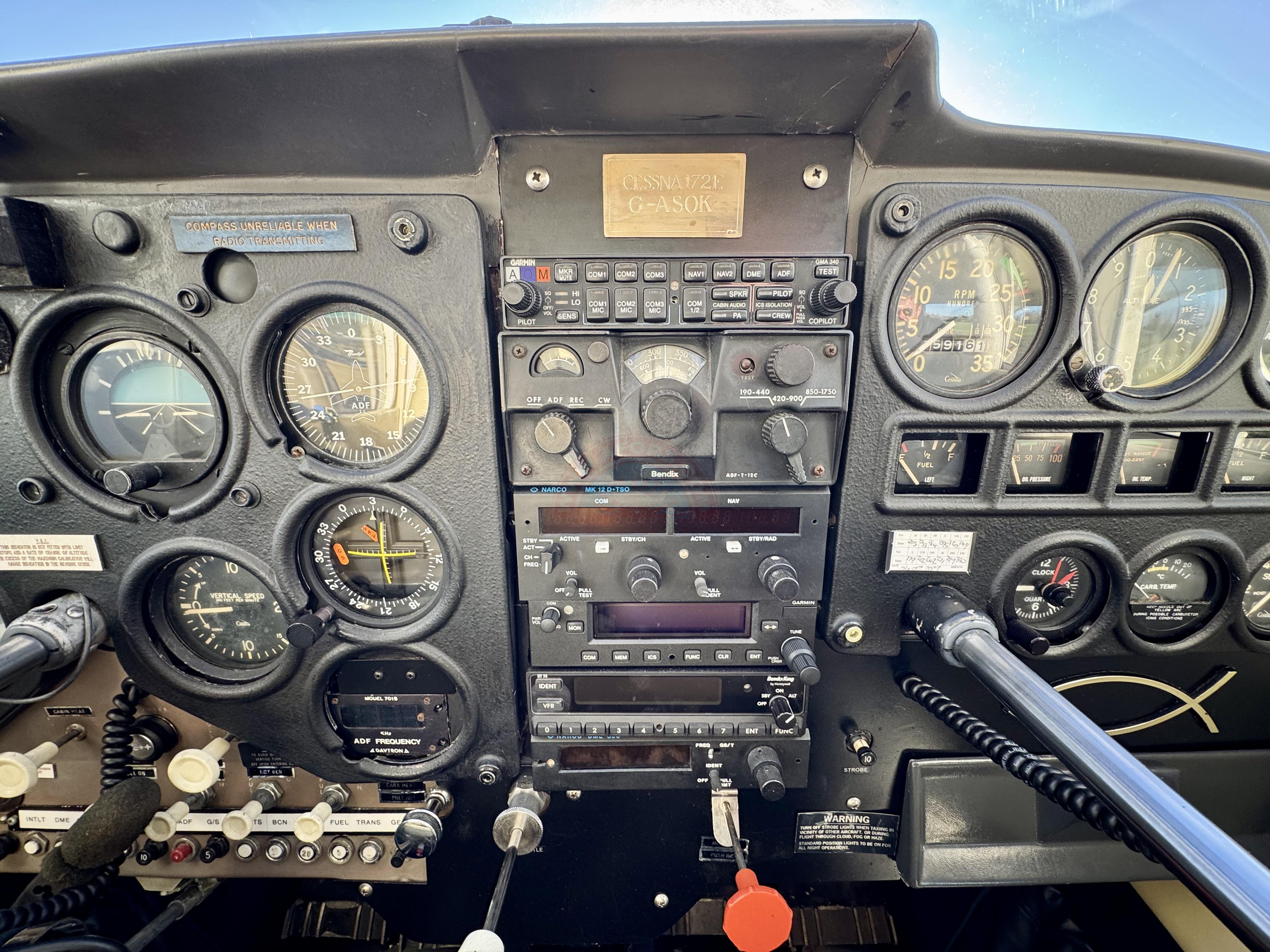 The aircraft is equipped with Garmin 8.33 radio, Bendix King KT74 Mode S transponder, traditional steam gauges, and legacy Narco and ADF equipment (not recently tested). With an ARC and Certificate of Airworthiness valid until 01/08/2026, G-ASOK is ready to be enjoyed immediately and represents excellent value for a dependable, economical four-seat platform.